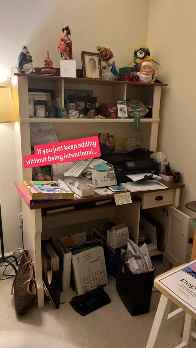 Clutter in any space can feel overwhelming, one strategy is to set a timer for 15 minutes and just see how far you get. Then stop. Come back tomorrow for 15 more minutes. Even with only minutes a day, over time you will see progress!
